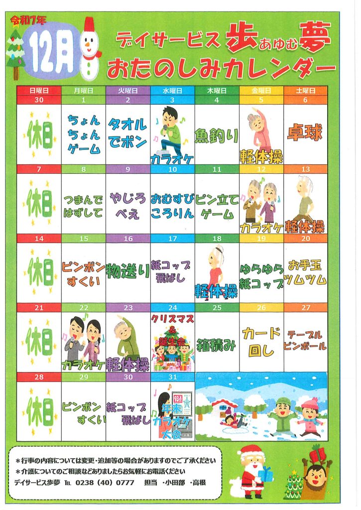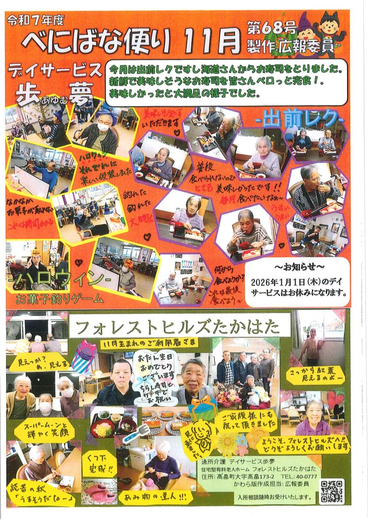 令和7年11月デイサービス歩夢べにばな便り